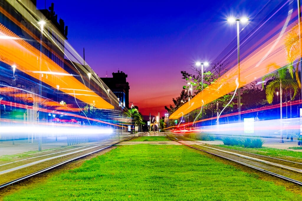 Naquele dia, encontrei a cena que ambicionava, o que me deixou extremamente feliz. A luz residual do pôr do sol projetava tonalidades coloridas incríveis, os postes cintilavam ao longo da via e os trens, com a longa exposição, em sincronia quase perfeita, riscaram de luzes meu frame, formando linhas diagonais vibrantes que conferem perspectiva, dinamismo e uma harmoniosa profusão cromática.